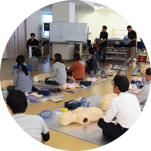 テキストを持ってAHAトレーニングセンターへ。インストラクターから直接指導を受け、マネキンでCPRなどを練習します。対面なので、しっかり技術が身につきます。